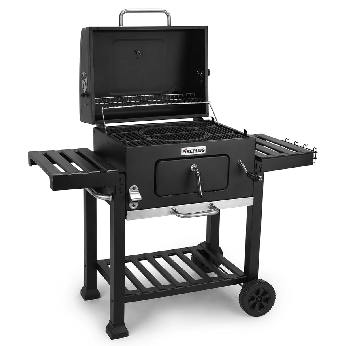 - BARBACOA PORTÁTIL: Esta barbacoa con ruedas para carbón es estable y fácil de transportar y almacenar, además, incluye una funda para proteger y preservar tu barbacoa cuando no está en uso. Cuenta con dos bandejas laterales plegables y una inferior para guardar platos, cubiertos, utensilios y otros accesorios de cocina.