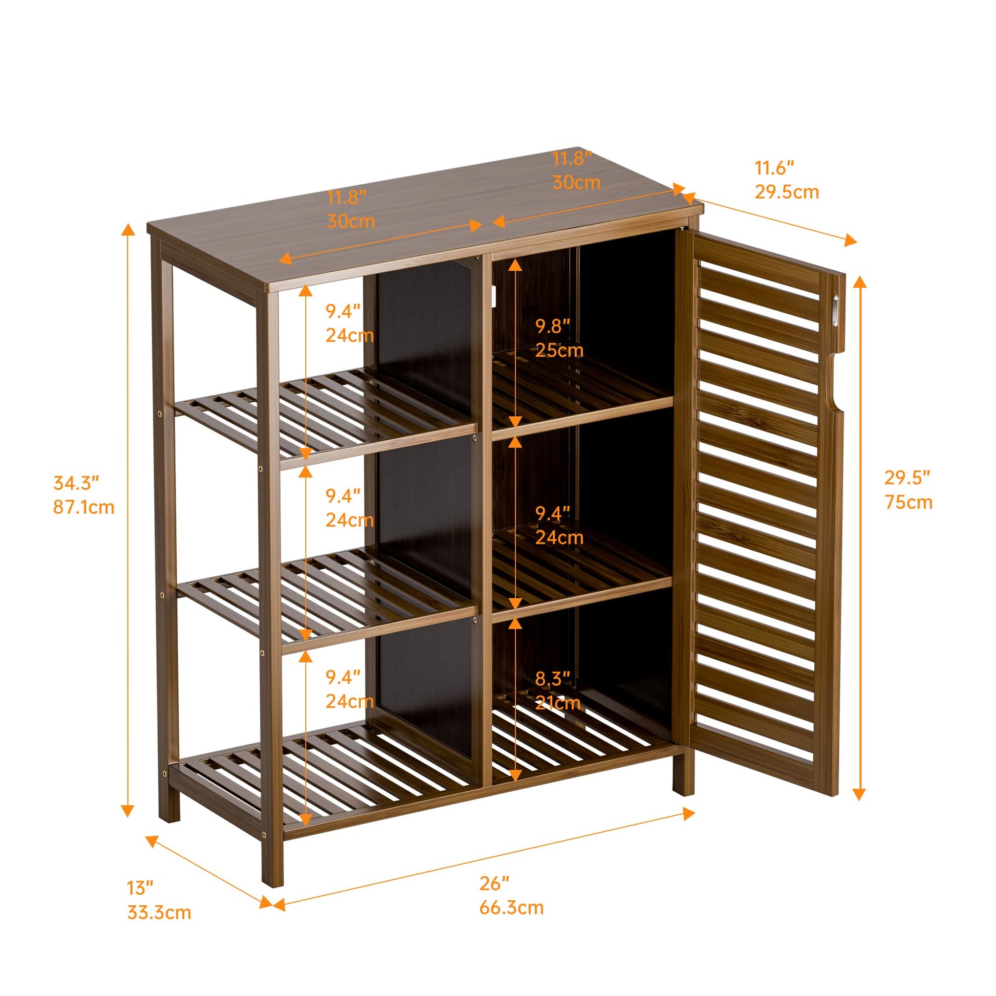 Organiza tu espacio con estilo y funcionalidad gracias a este elegante armario de baño independiente fabricado en bambú de alta calidad. Su acabado en color nogal aporta calidez y sofisticación a cualquier ambiente.