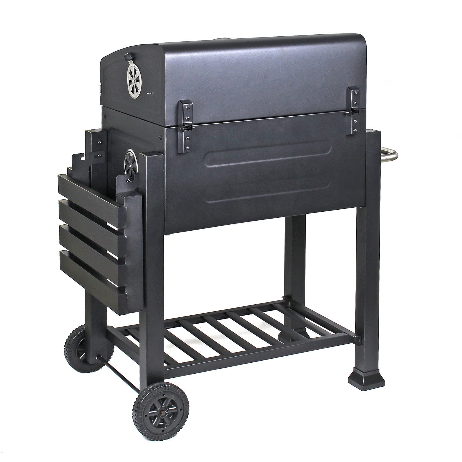 - [Almacenamiento Práctico] Dos estantes ofrecen espacio extra para guardar carbón, encendedor y más. Mueve la barbacoa fácilmente con las ruedas plásticas.